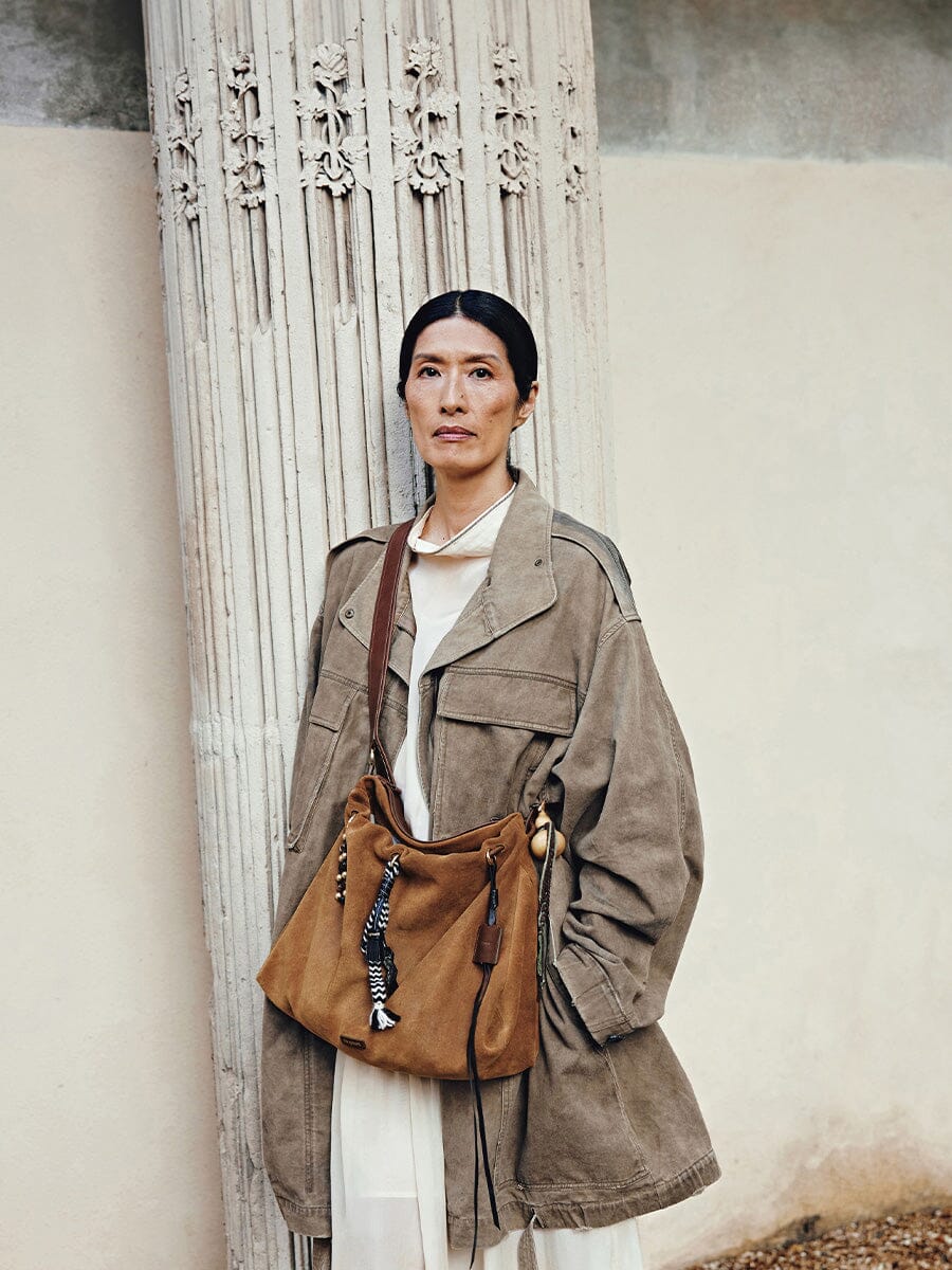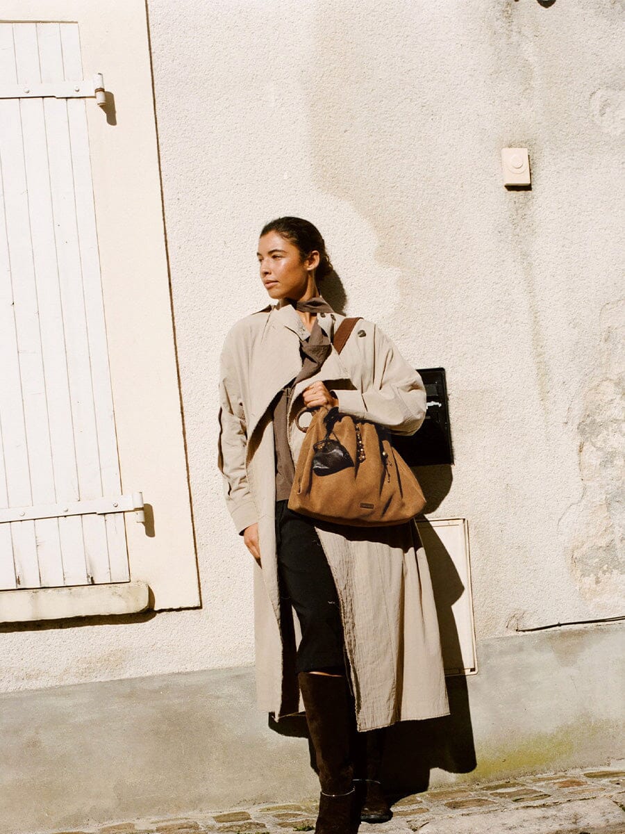 - Desert-tote inspired, the bag embodies nomadic gathering joy.