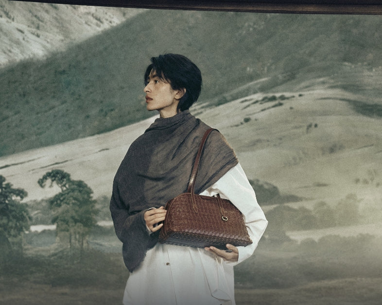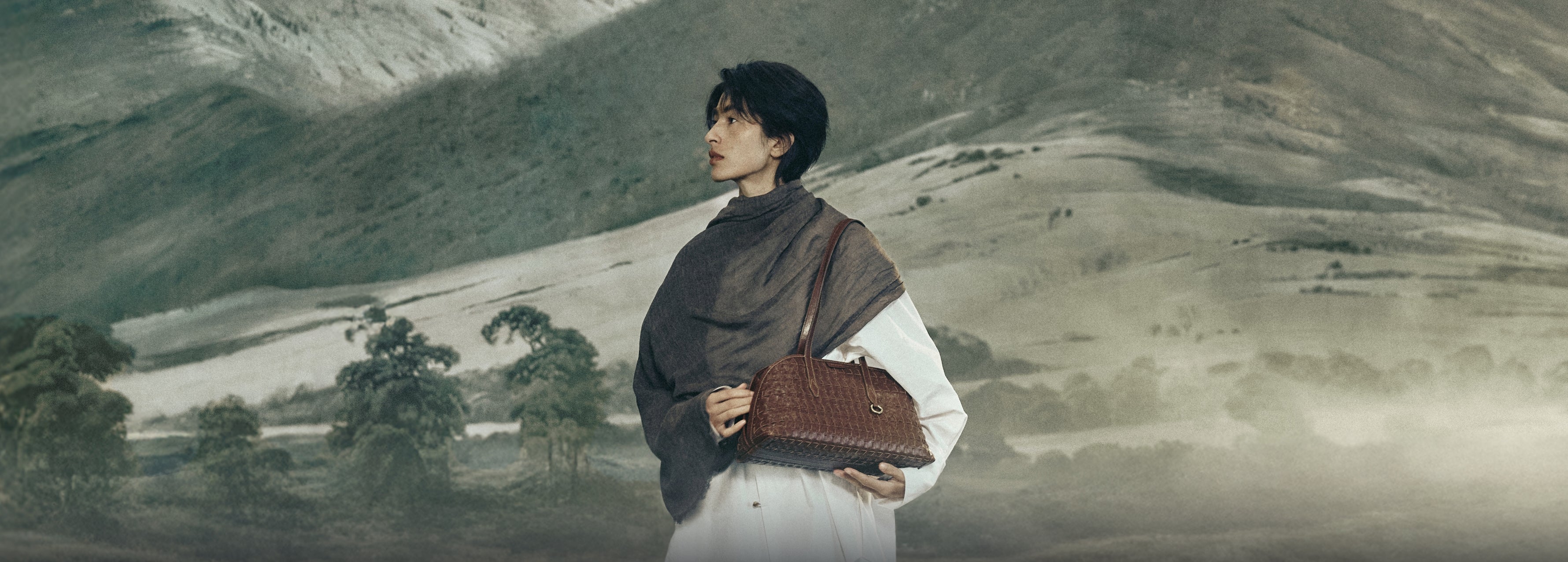 Songmont brings this ancient visual language through modern craftsmanship. Using a whole full-grain leather panel construction and hand-threaded weaving techniques, this collection rebuilds dimensional structure and creating depth through light and shadow.