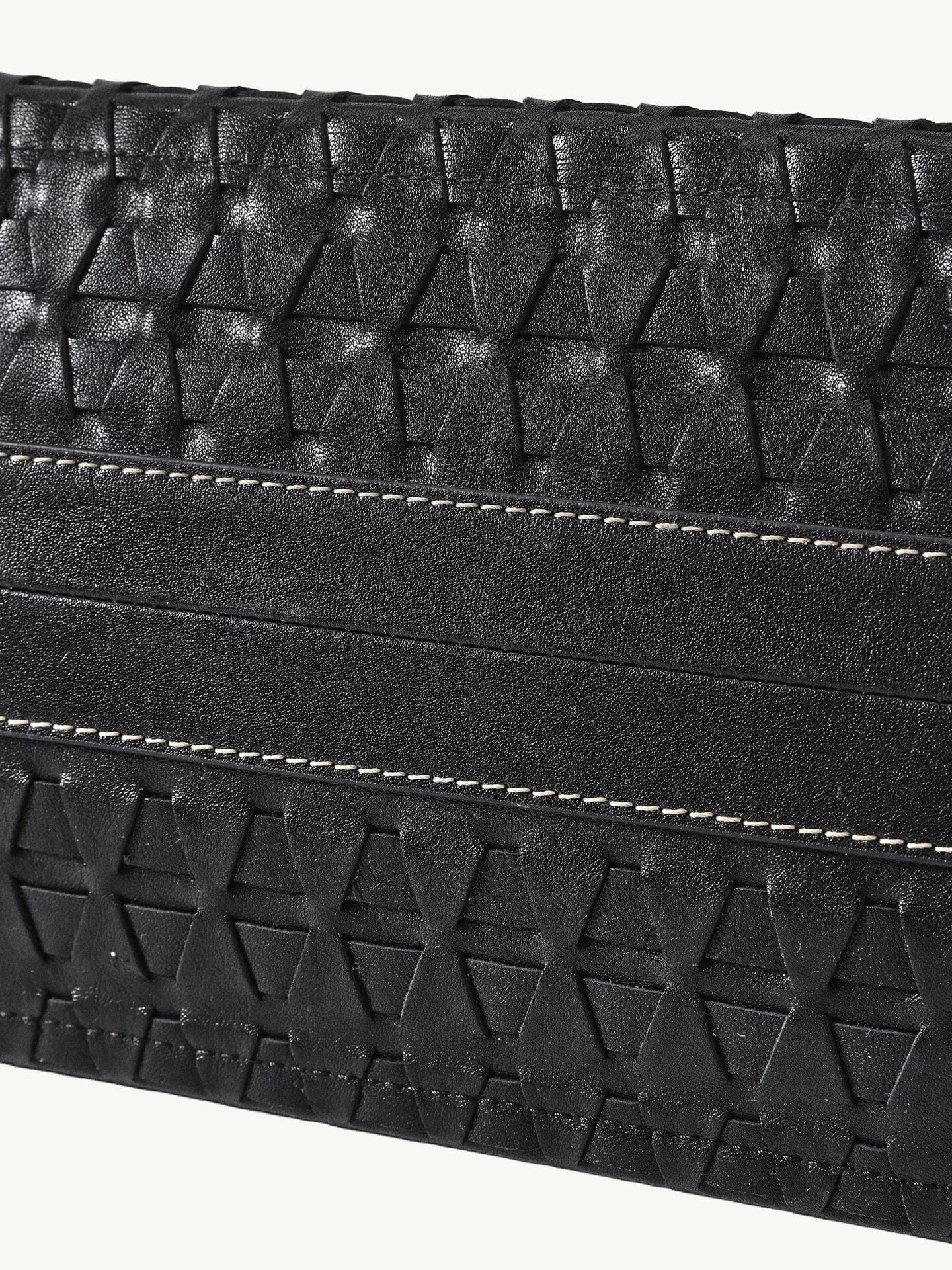 - Inspired by the Kezil Thousand-Buddha Grottoes, it is woven from premium leather into geometric forms.