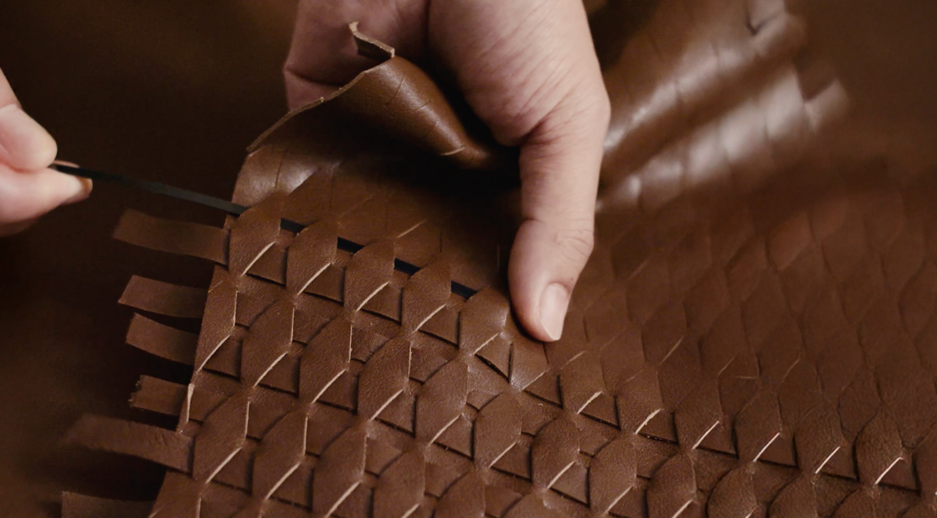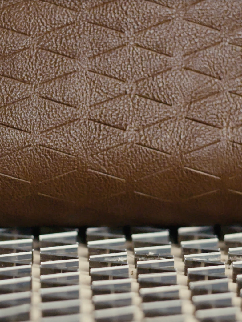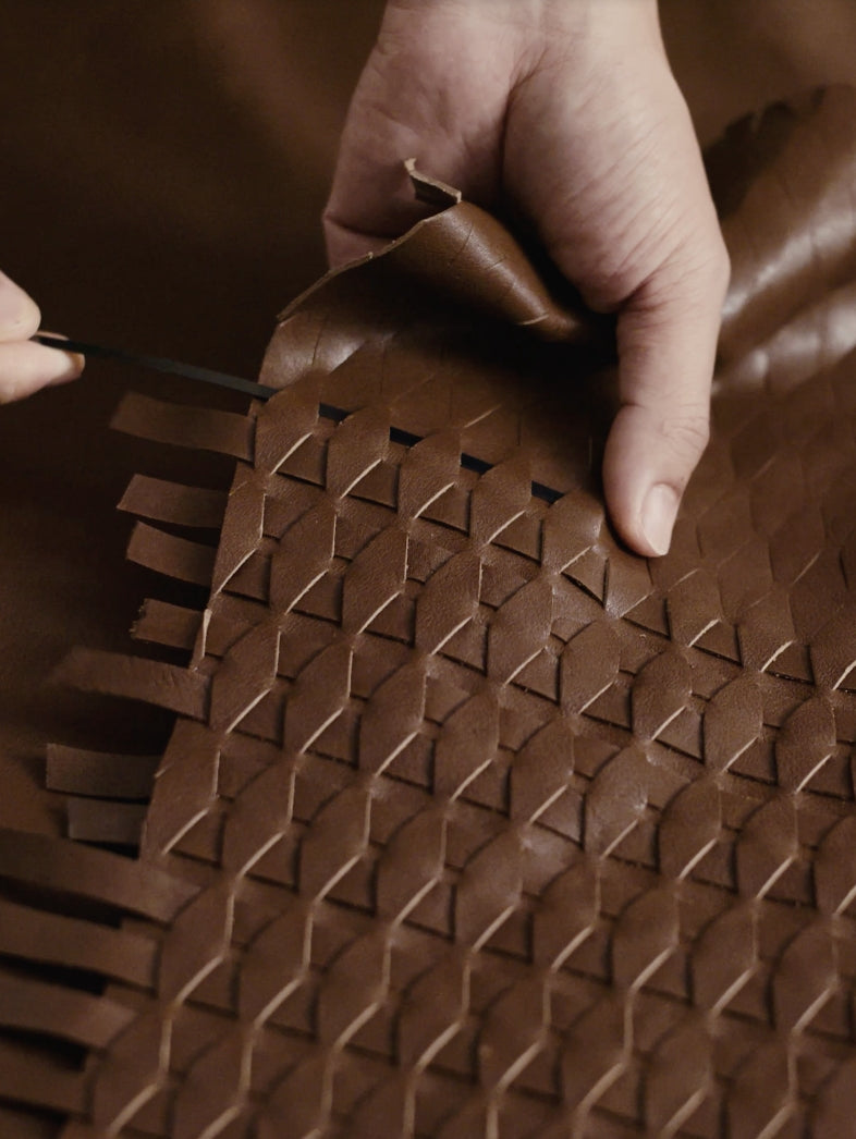 - แต่ละชิ้นแสดงสีที่แตกต่างกันไปตามเส้นเกรนอันเป็นเอกลักษณ์ ซึ่งสร้างสรรค์ขึ้นโดยใช้เทคนิคการย่นบนหนังฟอกฝาด