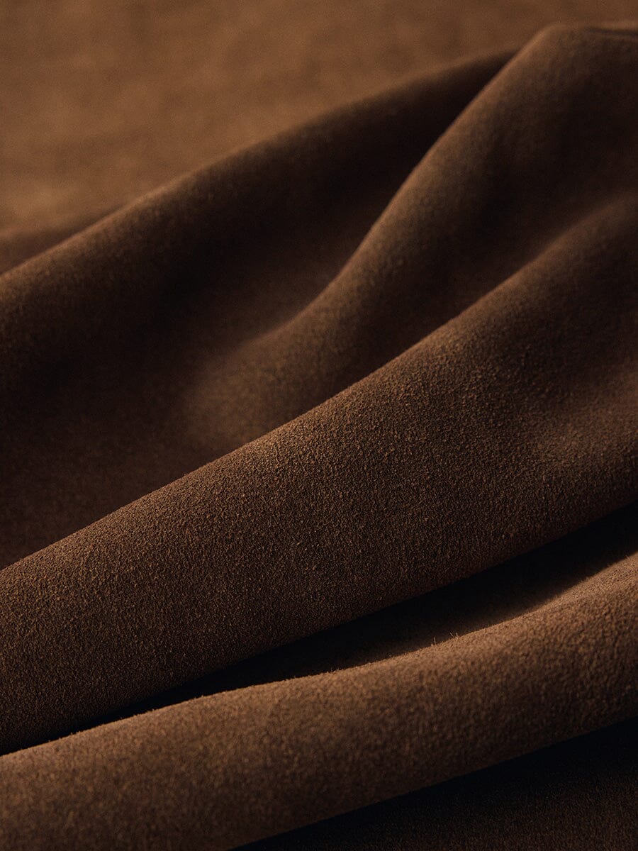 • High-gloss sueded cowhide feels luxuriously soft, with a subtle two-tone sheen.