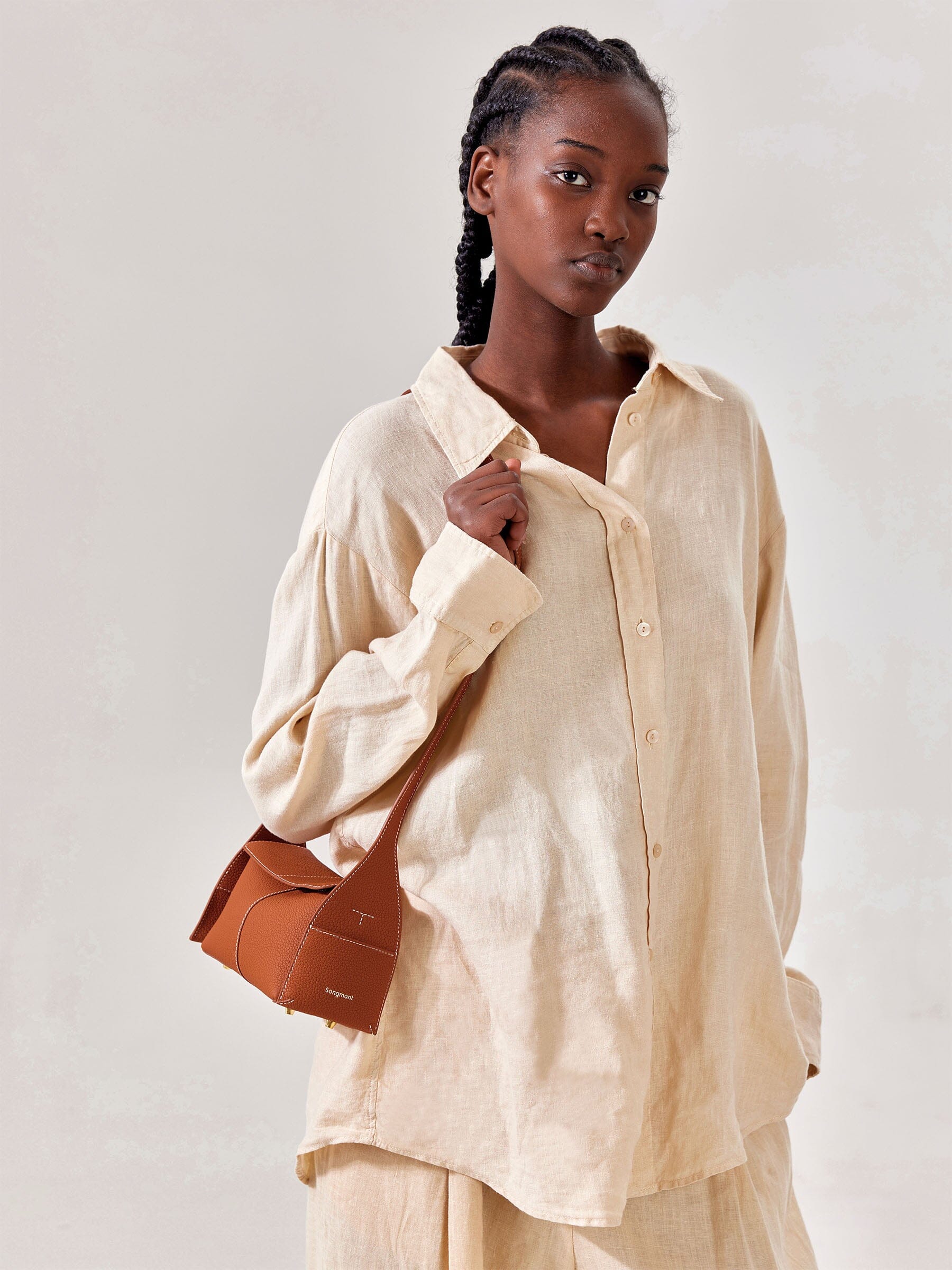 กระเป๋า Drippy Roof Bag ได้รับแรงบันดาลใจจากหลังคาบ้านแบบจีน โดยนำสถาปัตยกรรมตะวันออกมาตีความใหม่ด้วยกระเป๋าถือหนังสไตล์โมเดิร์น